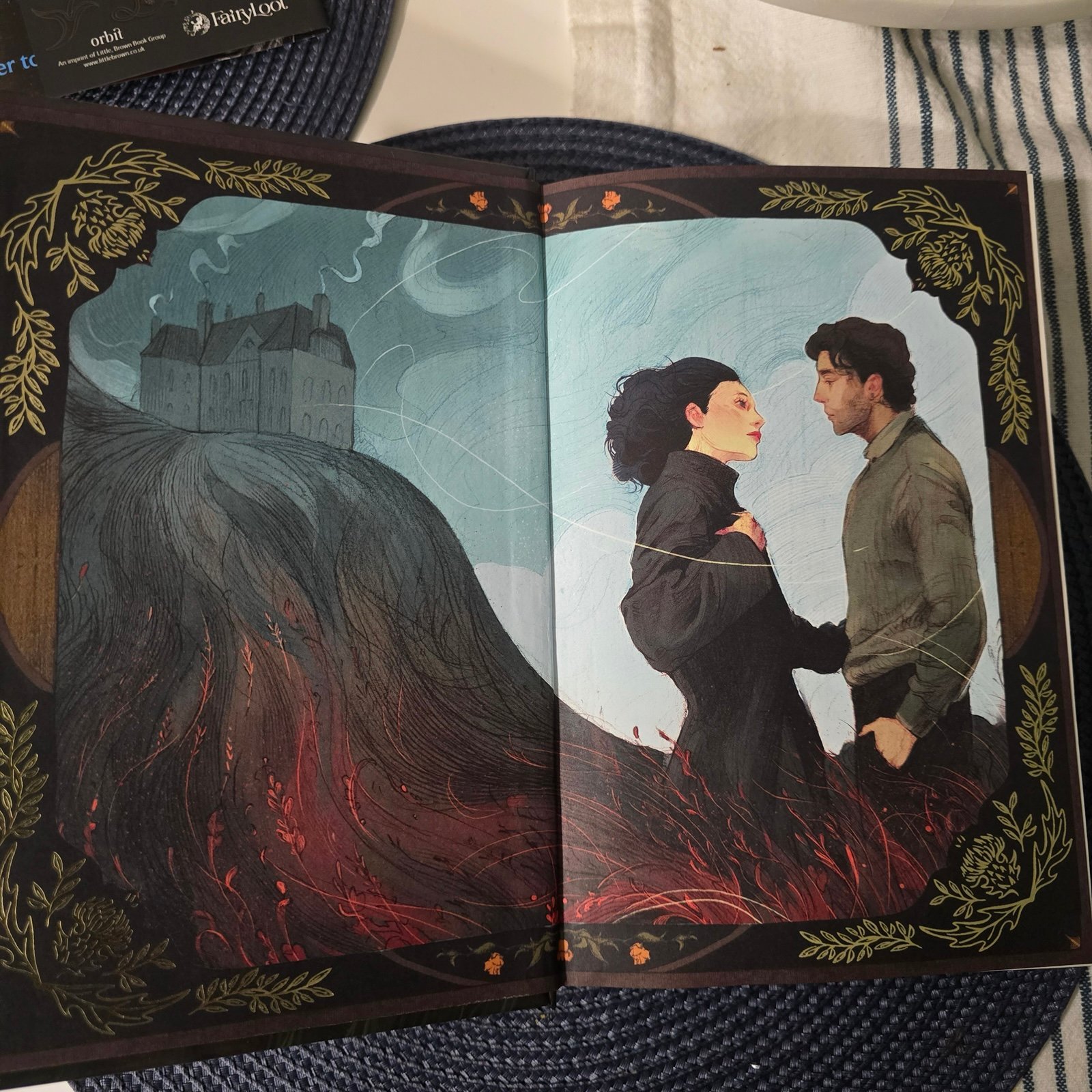 FairyLoot Exclusive Edition has a redesigned cover with artwork by @ceillo, a colourway variation of the trade cover as a reversible dust jacket, artwork with foil on the hardcover by @thecreepingmoon, foiled character artwork on the endpapers by @marymetzgr, digitally sprayed edges on all three sides by @c.e.illo, an author letter bound into the book with a digital signature, and bonus content: a bonus chapter!